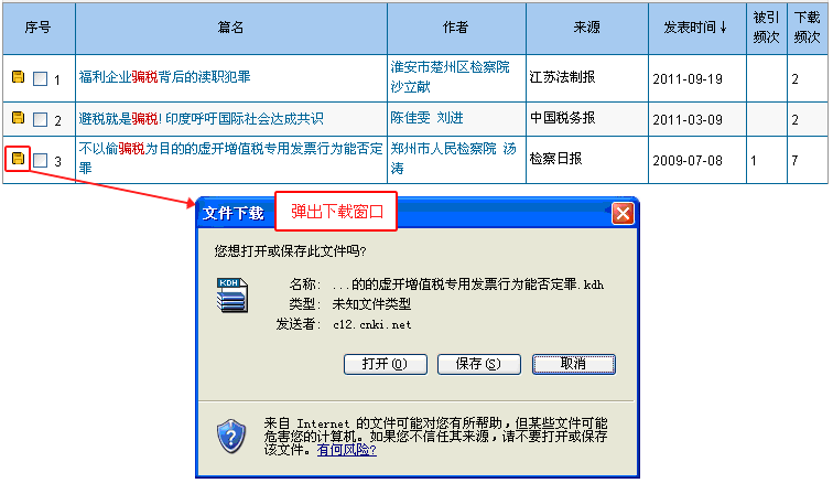 ”直接下载,点击弹出页面的“打开”按钮,浏览全文;或点击“保存”按钮,保存到本地磁盘,双击打开浏览。